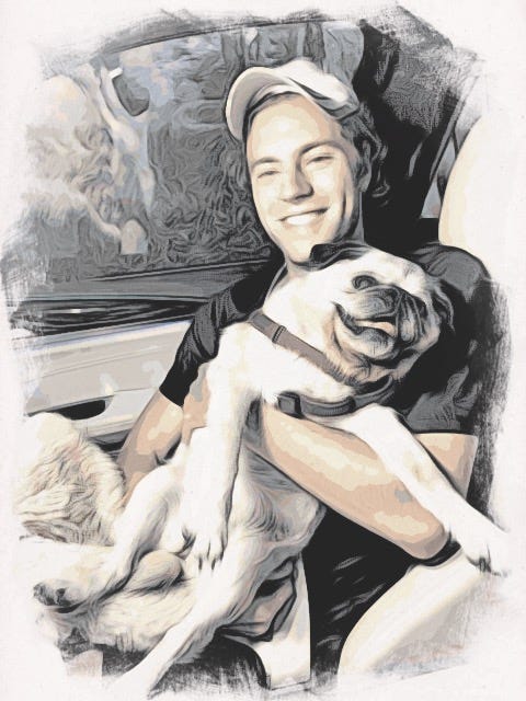 My favorite phrase is “Good pug.” I can’t hear it enough. I like “good pug” better than “good dog” because good pug is about pugs. Good dog is fine, but good pug is better. There are many dogs but only a few pugs. I am one of the few, and I like it. I want Tom to learn what good means— good means “being like a dog,” and very good means “being like a pug.” When Tom acts like a pug, he will earn praise like “Good Tom” and maybe get a treat he can share with me.
